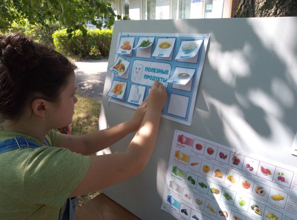 Сотрудники библиотеки-экоцентра провели на свежем воздухе интерактивную игру «Полезно – неполезно» для ребят из летнего лагеря школы № 5.