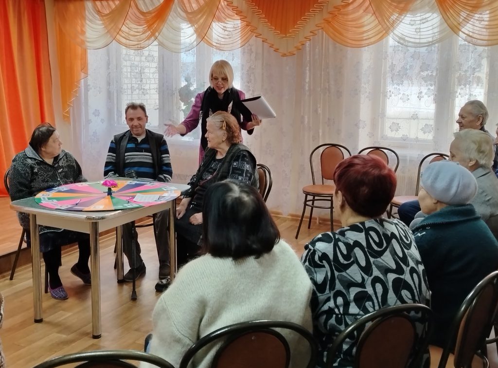 Участники удобно расположились в актовом зале, повторили правила игры и приступили к интеллектуальному соревнованию. С живым интересом и добрым юмором пожилые люди слушали выпавшие им вопросы, вспоминали традиции народного праздника и с энтузиазмом вращали стрелку.