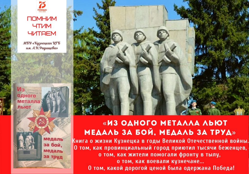 На официальных интернет-площадках Кузнецкой центральной городской библиотеки им. А.Н. Радищева в преддверии Дня Победы был реализован виртуальный информационный проект #ПомнимЧтимЧитаем.