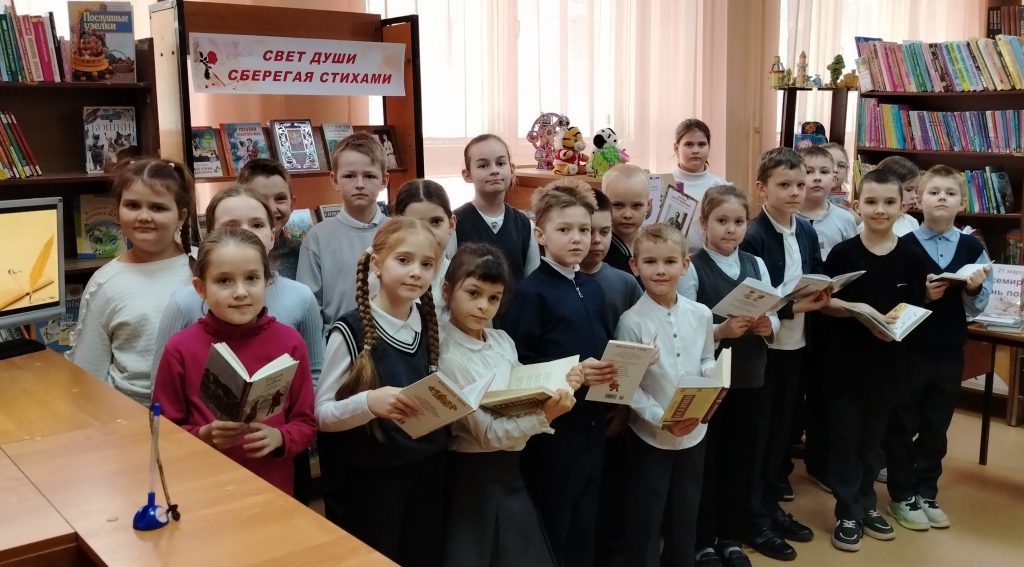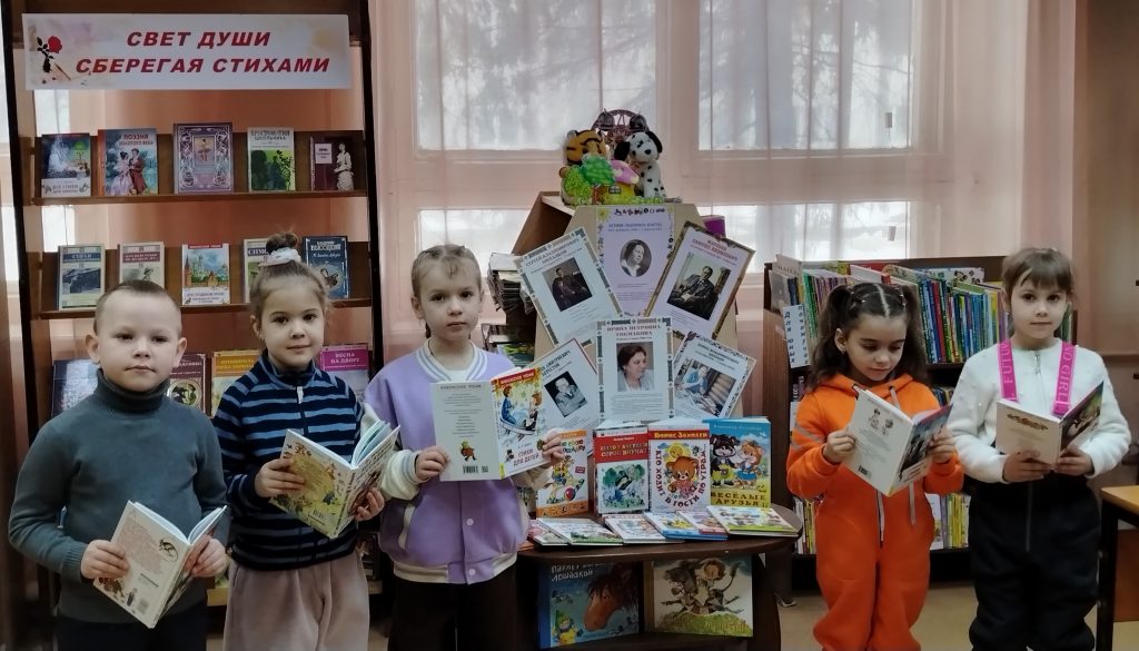 К литературному мероприятию оформлена выставка «Свет души сберегая стихами», на которой представлены стихотворные сборники русских и советских классиков. Отдельная зона посвящена книгам детских поэтов. Читатели выбирали сборники любимых авторов, находили известные стихи и с удовольствием их декламировали. Школьники открывали для себя новые имена поэтов и знакомились с их творчеством.