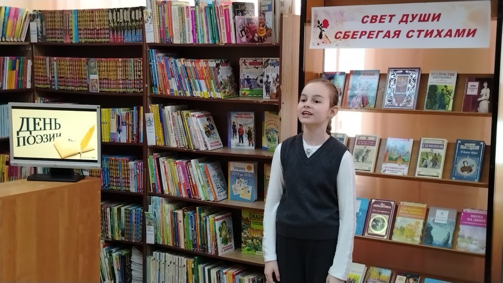 В детской библиотеке прошёл поэтический марафон «Красота,  живущая в стихах», организованный к Всемирному дню поэзии. С 17 по 20 марта на абонементе звучали стихи в исполнении юных пользователей.