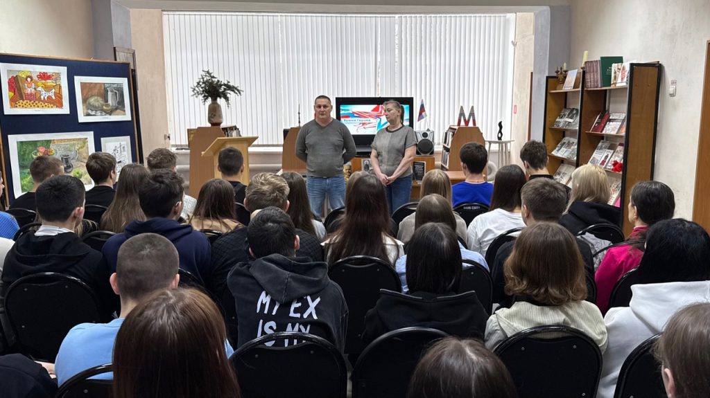 В юношеской библиотеке прошла встреча студентов колледжа электронных технологий и многопрофильного колледжа с волонтёрами СВО Алексеем и Ольгой Фадеевыми – родителями погибшего на спецоперации солдата-срочника Алексея Фадеева.