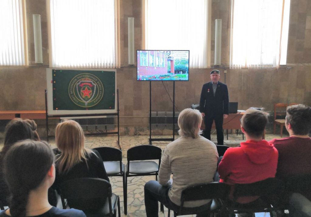 В преддверии Дня защитника Отечества в Кузнецкой центральной городской библиотеке им. А.Н. Радищева состоялась встреча студентов Кузнецкого колледжа электронных технологий с председателем Совета ветеранов пограничных войск г. Кузнецка Олегом Валентиновичем Герасимовым.