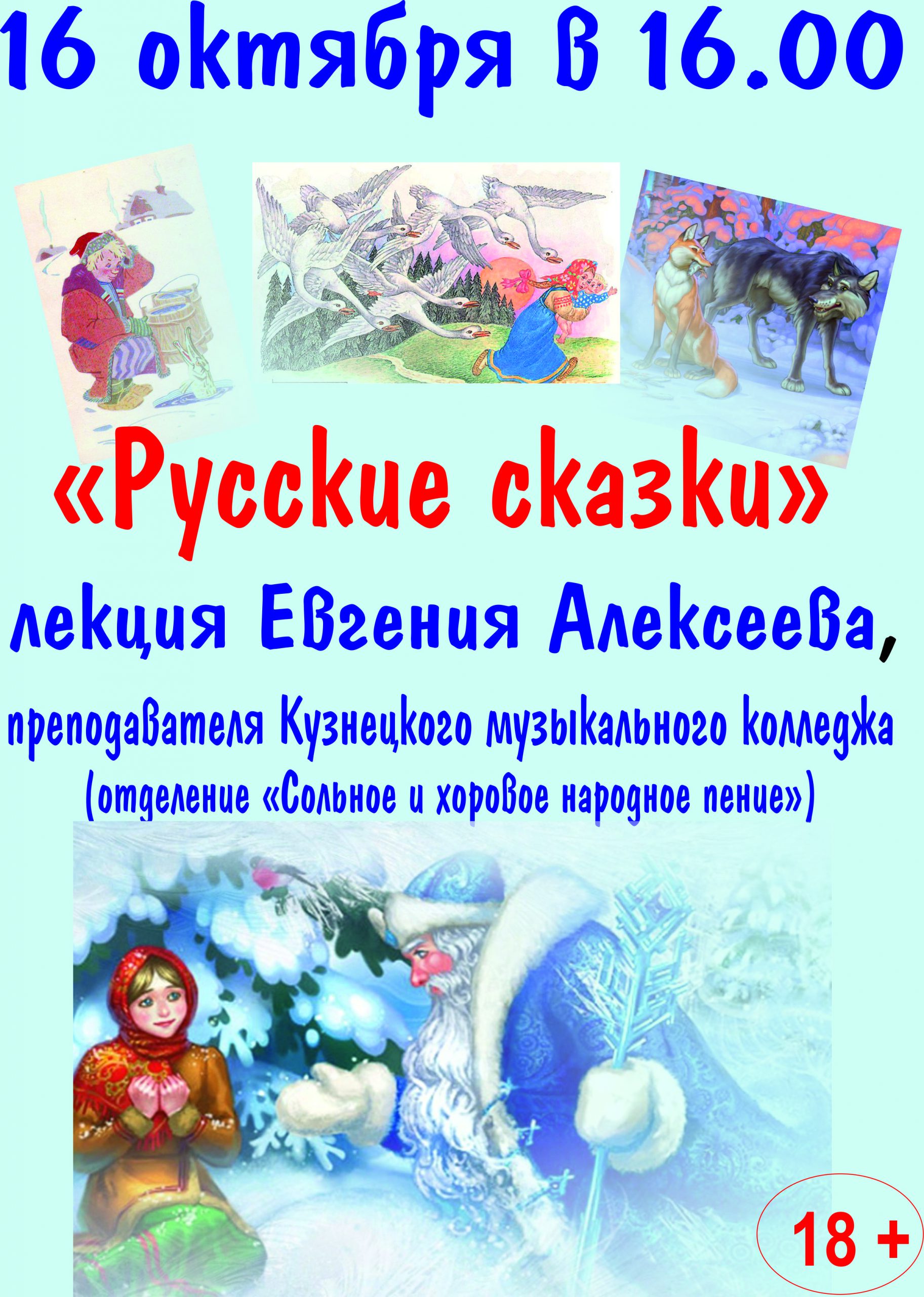 16 октября в 16 часов в Кузнецкой центральной городской библиотеке им. А.Н.Радищева состоится лекция преподавателя Кузнецкого музыкального колледжа Е.Н.Алексеева «Русские сказки».