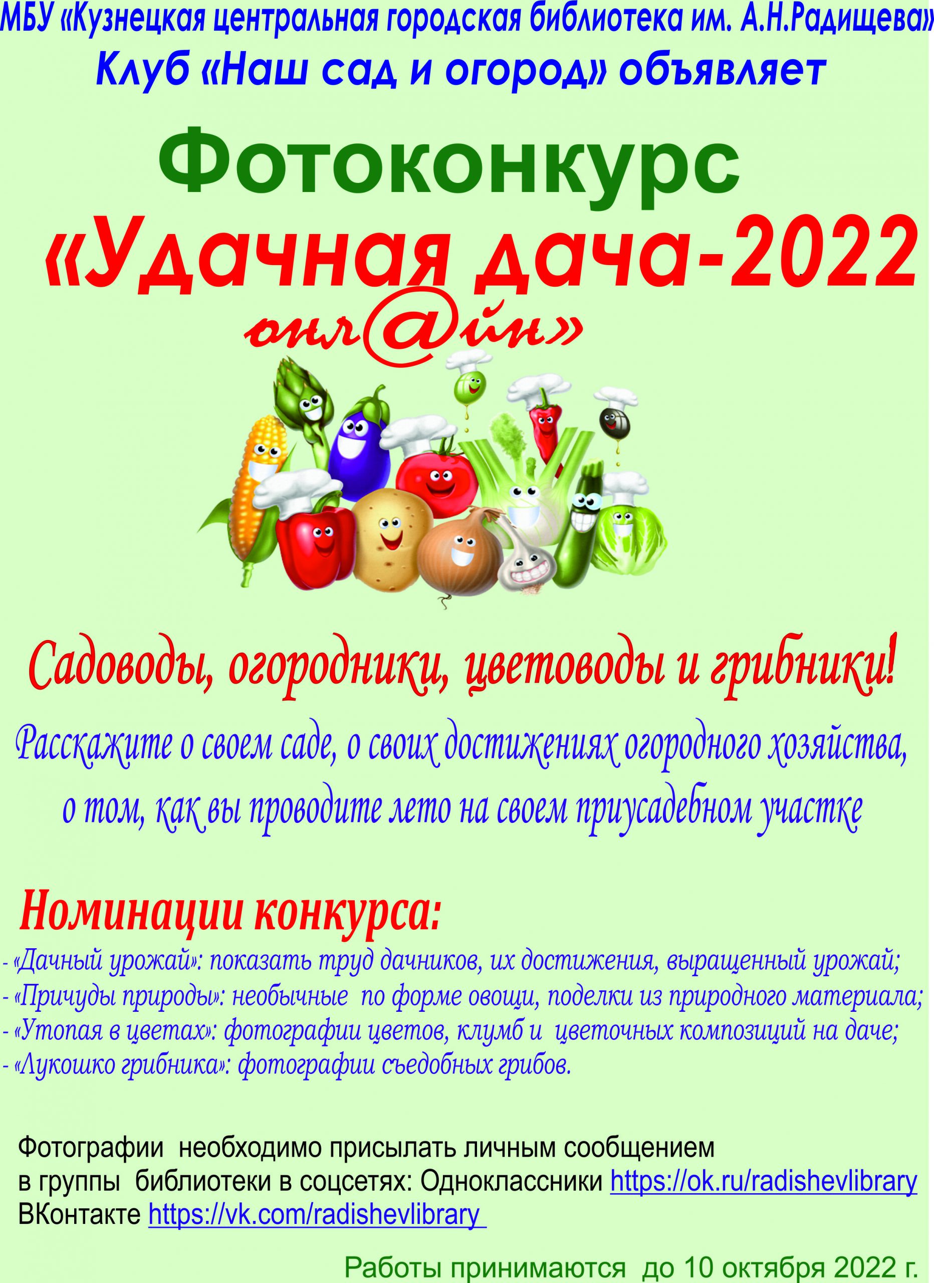 Клуб «Наш сад и огород» объявляет фотоконкурс «Удачная дача-2022 онл@йн».