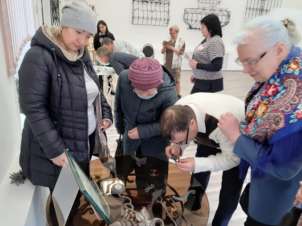 Не менее интересна была выставка, к экспонатам которой можно было прикоснуться, ведь для незрячих и слабовидящих людей большое значение имеет тактильное изучение предмета. На выставке были изделия потомственного кузнеца Константина Щипанова, а также работы мастера кузнечного дела Виктора Седышева.