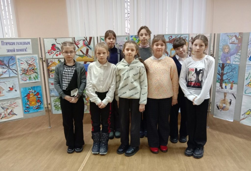 В библиотеке-экоцентре работает выставка детского творчества «Птичкам голодным зимой помоги!».