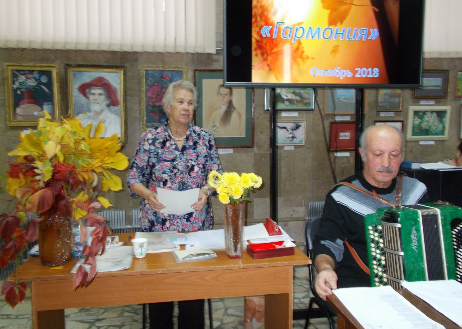 Главной темой октябрьской встречи в «Гармонии» стали комсомольские песни, в которых нашли отражение и Гражданская война, и трудовые пятилетки, и героизм в годы Великой Отечественной войны, и освоение целины, и комсомольские ударные стройки 1960-70-х годов. С воодушевлением исполняли «клубисты» много раз пропетые в юности песни. Одни навевали горестные воспоминания, другие заставляли улыбаться, а слова третьих зажигали глаза собравшихся гордостью за свою страну, за причастность к её истории. Это — «Песня о тревожной молодости», «Комсомольцы – добровольцы», «Нам песня строить и жить помогает», «День Победы», «Здравствуй, земля целинная», «Мой адрес Советский Союз». Основным лейтмотивом песенного марафона стали строки из песни «Не расстанусь с Комсомолом, буду вечно молодым!». И действительно, лица всех собравшихся в зале, всех, кто пел в этот день комсомольские песни, молодели прямо на глазах. А подарил членам клуба «Гармония» путешествие в молодость, неиссякаемую радость и юношеский задор замечательный аккомпаниатор Юрий Александрович Батурин, который к 100 – летию ВЛКСМ создал программу из лучших комсомольских песен. Юрий Александрович выступает с ними в школах и колледжах города, на различных мероприятиях, посвященных вековому юбилею ВЛКСМ.