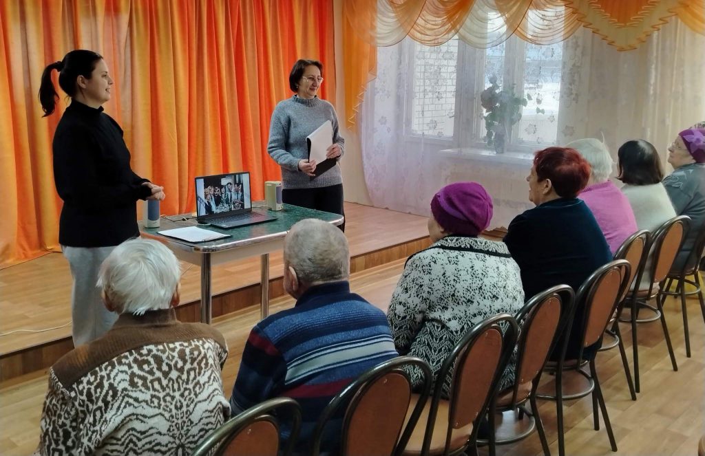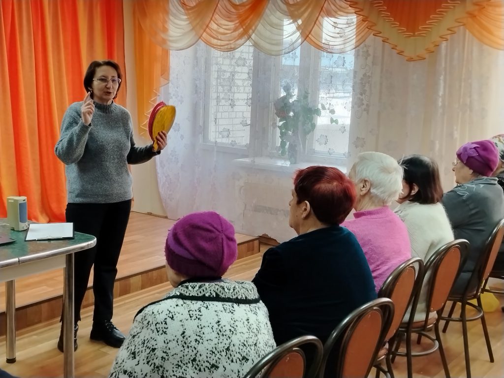В литературной игре «Зеркала» участники дружно узнали известных героев детских книг. Угадывая музыкальные произведения по мелодиям викторины «Песни нашей молодости», пожилые люди эмоционально исполнили любимые народные и советские песни. Игра «Житие мое» прошла громко и весело. Ведь участники не только смогли продолжить пословицы, но и давали им свои шуточные объяснения.