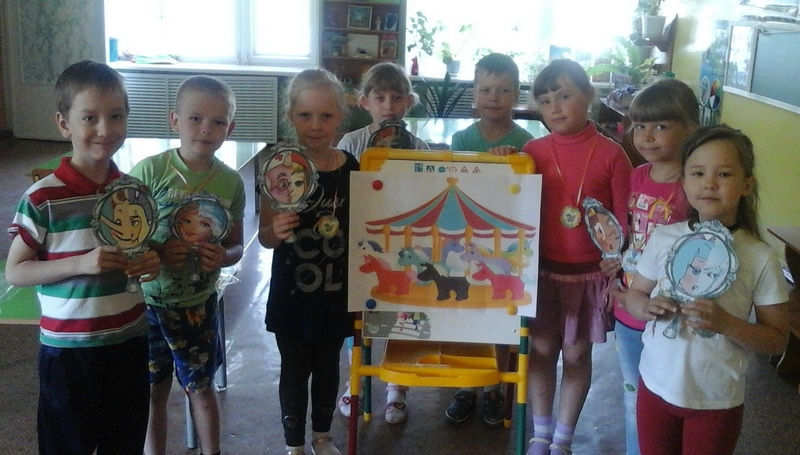 Ребятам было предложено вспомнить сказки и «прокатиться» на сказочной карусели, состоящей из лошадок разного цвета, каждая из которых имела своё задание. Дошкольники с большим удовольствием окунулись в атмосферу игры, демонстрируя свою сказочную эрудицию. Они активно выполняли задания: подбирали имена сказочных героев к буквам алфавита, исправляли ошибки в названиях сказок, узнавали героев по описанию, определяли авторов сказочных объявлений, угадывали отражения в «кривых зеркалах», перечисляли волшебные предметы, участвовали в блиц-опросе.