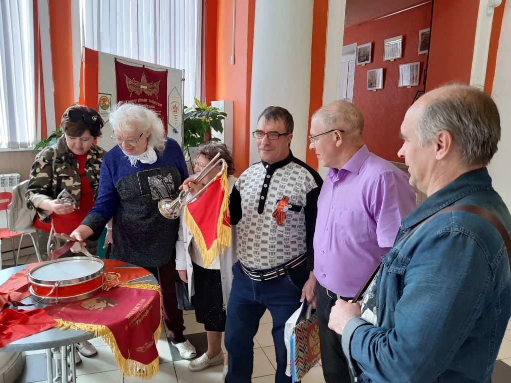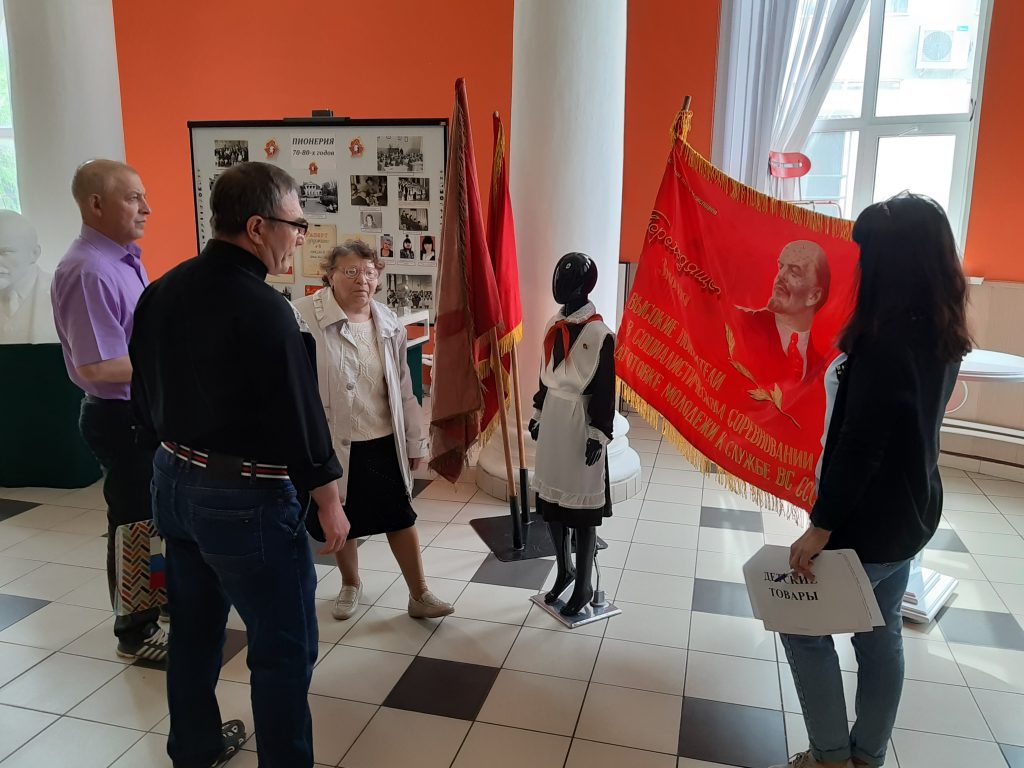 После просмотра выставки члены клуба делились впечатлениями и вспоминали своё детство и молодость, когда сами были пионерами, как трепетно и с гордостью относились к пионерскому галстуку и значкам.