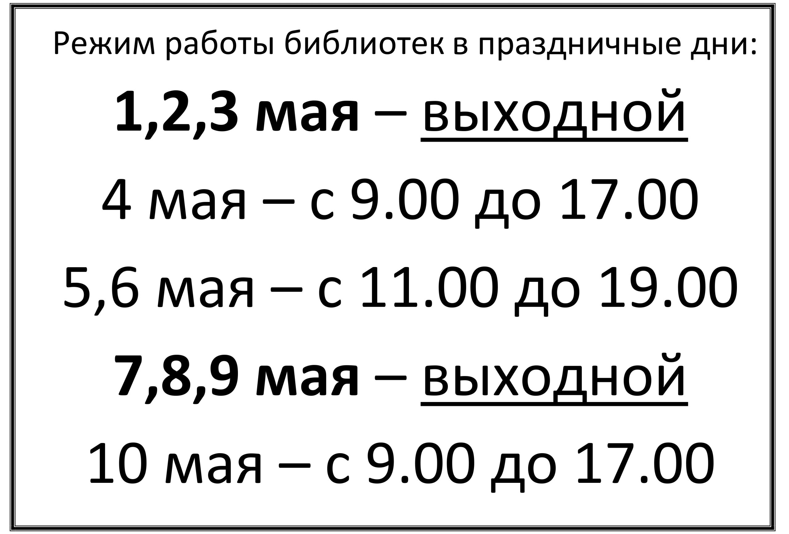 Режим работы библиотек в праздничные дни