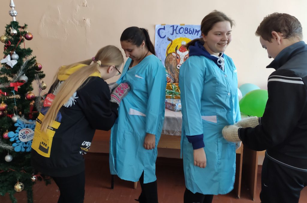 Так же школьников и студентов ждала игровая праздничная программа, посвященная святкам. Дети участвовали в шуточных викторинах, в игре «Угадай мелодию», соревновались в конкурсах. Также юноши и девушки участвовали в импровизированной сценке «Репка: новогодняя версия».