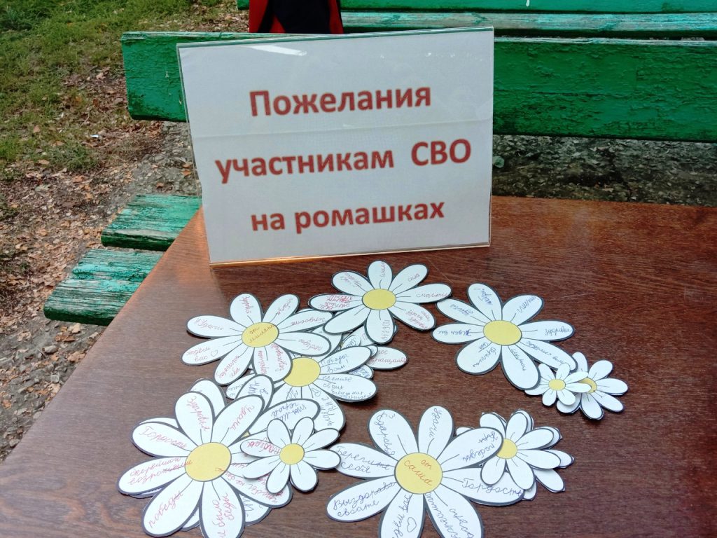 Ребята на ромашковых лепестках желали бойцам здоровья, удачи, победы, скорейшего возвращения домой. В ближайшее время ромашки-открытки отправятся в посылках с гуманитарной помощью из Кузнецка в зону боевого соприкосновения.