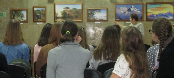 В ходе экскурсии сотрудники библиотеки рассказали детям об истории возникновения пейзажного жанра, о русском пейзаже XIX- XX вв. Ребята увидели полотна хорошо известных мастеров (И.Айвазовского, К.Брюллова, Н.Рериха, В.Поленова, Коровина, С. Щедрина), а также работы художников, чьи имена сегодня мало известны широкой аудитории (М.Лебедев, М.Воробьев, И.Пютнер. П.Орлов и др.) Ребята приняли участие в викторине «Узнай картину и назови художника», а также отвечали на вопросы сотрудников библиотеки о живописи.