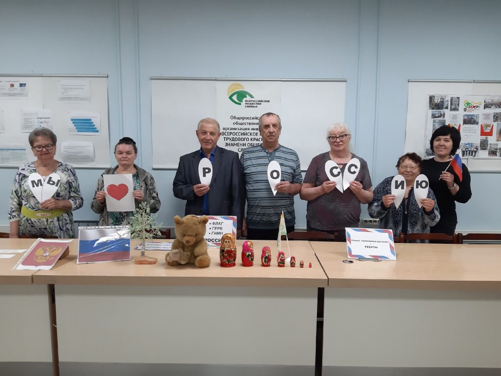 Игра состояла из пяти этапов: «Герб. Флаг. Гимн России», «Самые знаменитые россияне», «Русские загадки и сказки», «Ребусы», «Русские песни». Встреча началась с Гимна России. Куратор клуба напомнила исторические факты, связанные с праздником, а затем участники отвечали на вопросы о государственных символах России, отгадывали русские народные загадки и сказки по картинкам. Вспоминали пословицы и поговорки, а на станции «Русские песни» все вместе не только вспоминали, но и пели. На каждой станции игроки получали лепестки ромашки с буквами и в конце квеста собрали предложение: «Мы любим Россию!».