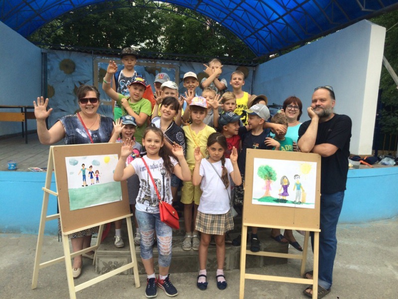 Что значит семья в жизни детей? О каком они мечтают доме? Кого хотят видеть в нём? Всё это они отобразили в своих рисунках. Фантазии ребят не было предела. Дома на асфальте они «построили» одноэтажные и многоэтажные, с мансардами и бассейнами, с качелями и американскими горками. Некоторые художники поселили свои семья на деревья, добраться до комнат можно только на лифте, у других окна выходят в океан. Дети поселили в этих жилищах мам, пап, себя, братишек и сестрёнок, ну и, конечно, своих любимых питомцев – собак и кошек. Но по-настоящему хозяйственных и домовитых мальчишек и девчонок оказалось пока немного. Девочкам понравилось рисовать на мольбертах, они изобразили самых близких и дорогих людей, тщательно прорисовывая лица и детали одежды. На рисунках детей есть солнце – символ тепла и благополучия.