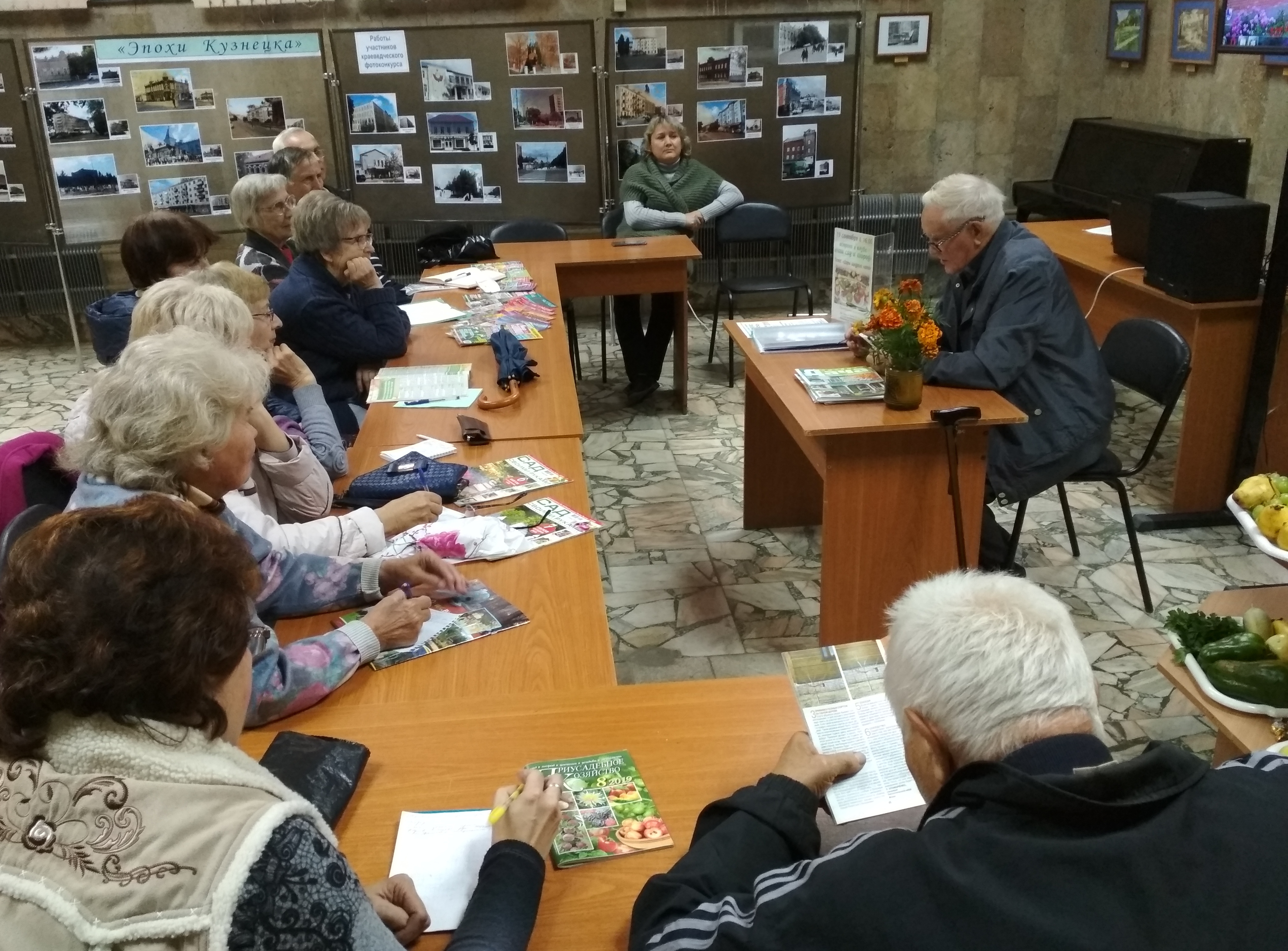 По традиции, был проведён обзор сентябрьских выпусков журналов «Приусадебное хозяйство», «Сад своими руками», «Любимая дача», «Мир садовода». Из публикаций собравшиеся узнали о пользе зелёного мыла в борьбе с болезнями и вредителями растений, о создании «правильного» компоста по разным рецептам, о новых сортах картофеля Ариэль, Гранд, Гулливер, Изюминка, о колонновидных яблонях и грушах на карликовом подвое. Многих заинтересовала информация о плоде-экзоте бамии, полезном для здоровья, о правильной посадке чеснока, о сборе, хранении и переработке яблок, о породах и особенностях пчёл, которые за день обрабатывают до 4-5 тысяч цветков. По шероховатой поверхности пчела может тащить груз, превышающий в 320 раз вес её тела, а для получения ложки мёда (30 г) 200 пчёл собирают нектар в течение дня! И ещё есть у пчёл мистическая способность: если надо, они удлиняют свою жизнь в 5-6 раз. Эти познавательные факты очень удивили тружеников 6 соток. Хотя их тоже можно сравнить с трудолюбивыми пчёлами: благодаря работе на своих участках, они делают жизнь насыщеннее, разнообразнее, наполненную смыслом, и радуются результатами своего труда, получая хороший урожай.