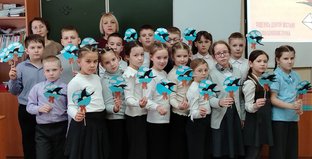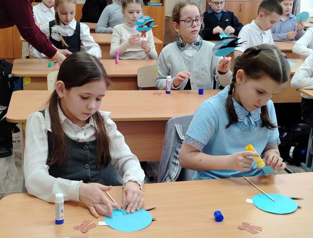 После познавательной части мероприятия дети приступили к творческой работе. Для участников были подготовлены детали патриотической аппликации: голубое небо, белые облачка, белогрудая птичка, письмо и георгиевская ленточка. Сосредоточенно учащиеся создавали своих ласточек, старательно собирая все элементы в единую композицию. Чувствовалось, что ребята вкладывают в эту работу частичку своей души и уважение к подвигу жителей осаждённого города. Пусть эта поделка станет символом памяти и стойкости непокорённого Ленинграда.