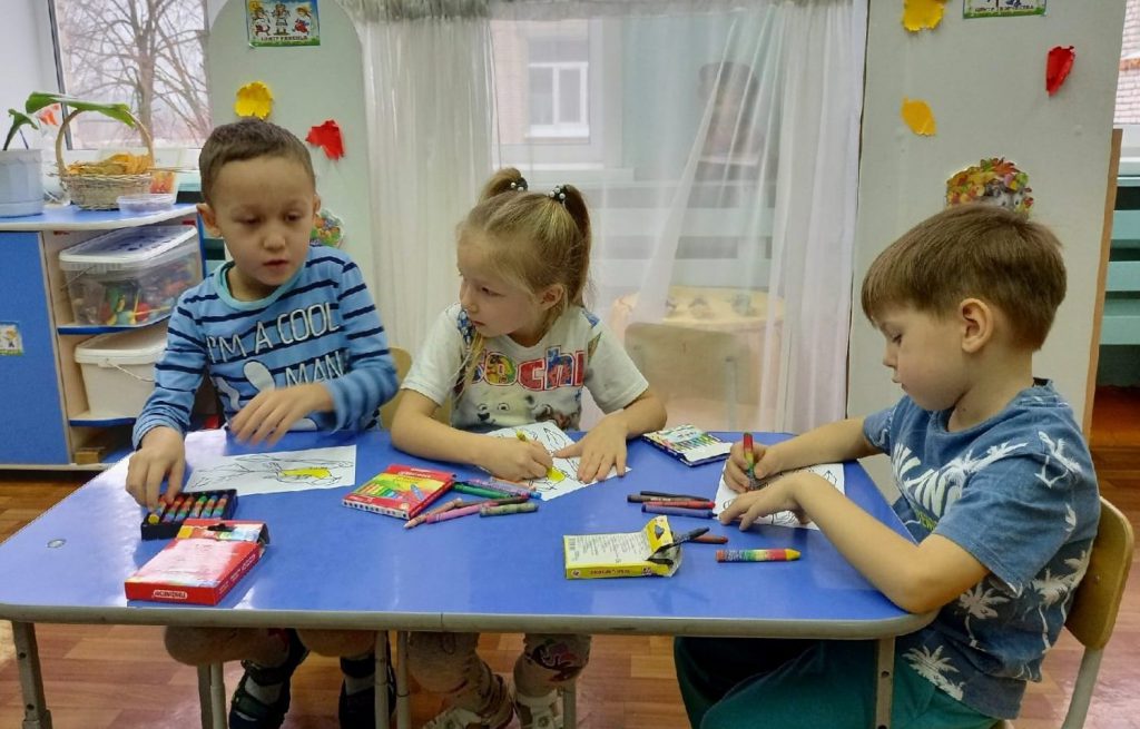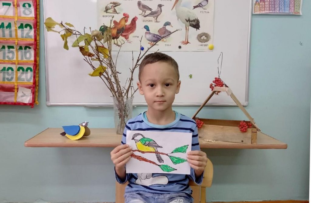 Дружно и старательно дошкольники разукрасили синичек цветными мелками. К встрече зимующих птиц дети повесили кормушки, насыпали корм и прочитали стихи о синицах.