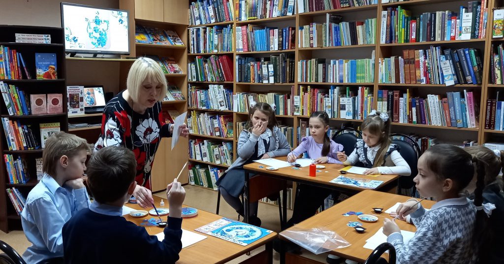 В детской библиотеке с первоклассниками школы №6 проведён мастер-класс «Сказочная гжель». Ребята познакомились с историей возникновения гжельского народного промысла, с работами умелых мастеров.