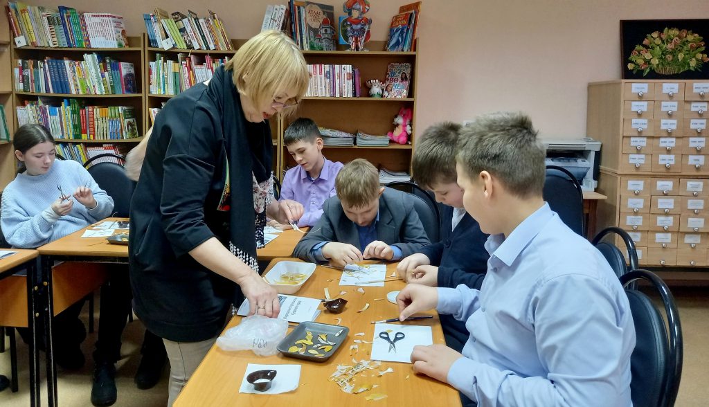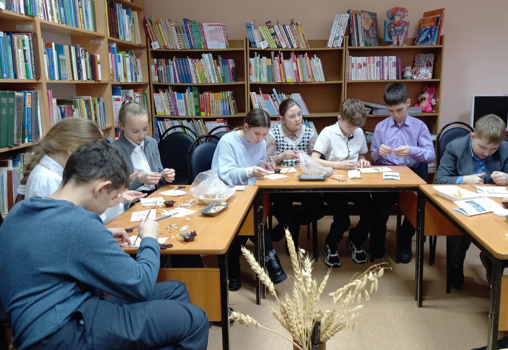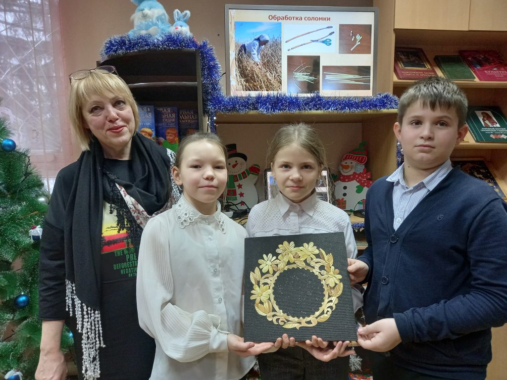 Библиотекарь познакомила школьников с видом декоративно-прикладного творчества, где используется природный материал – соломка. Она рассказала об истории зарождения этого вида рукоделия, об удивительных качествах природного сырья.