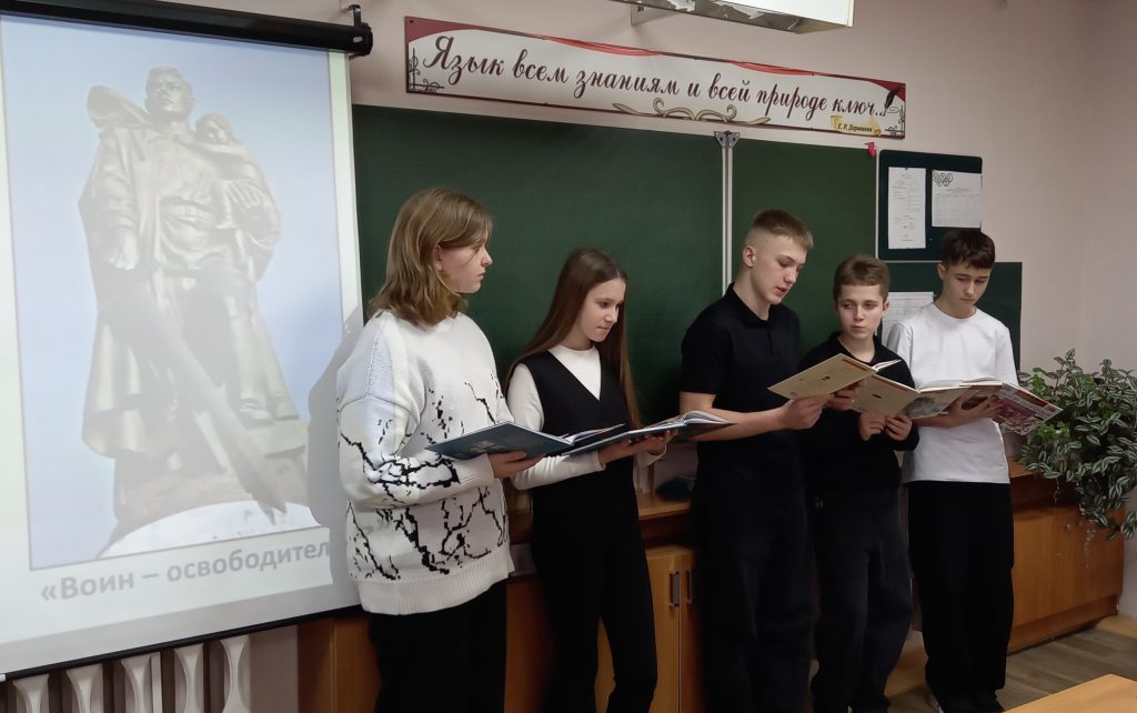 Неподдельный интерес вызвал у ребят рассказ о монументе «Воин-освободитель» в Берлине, символе мужества и самопожертвования. Ребята коллективно прочитали рассказ Льва Кассиля «Памятник советскому солдату», в основу которого положена история спасения немецкой девочки советским солдатом во время одного из берлинских штурмов.