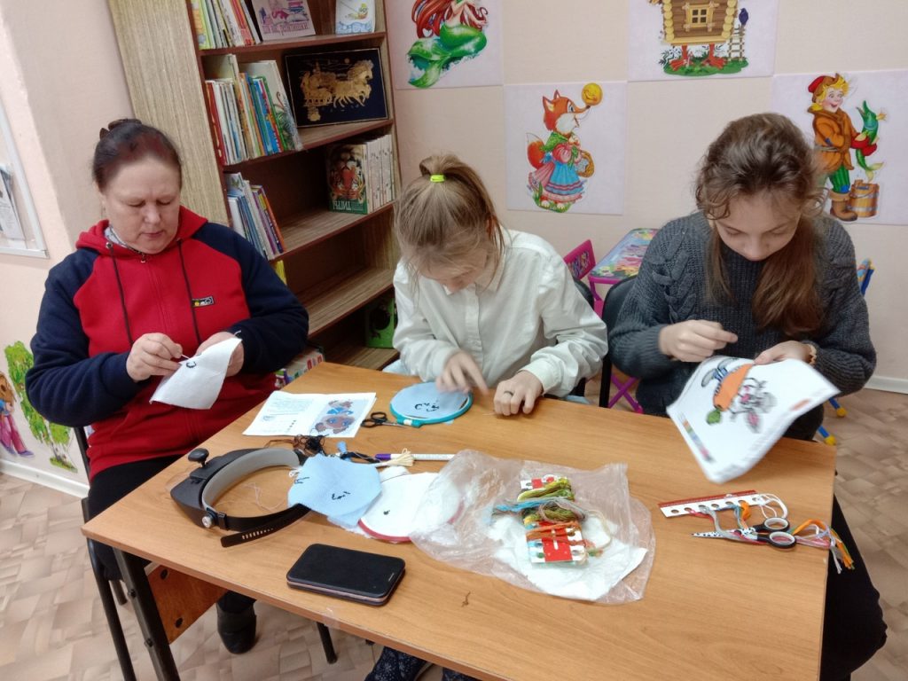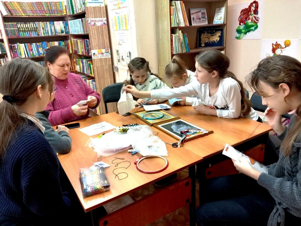 В творческой студии «Родничок» при филиале № 9 библиотекари обучают девочек вышивке крестом по канве.
