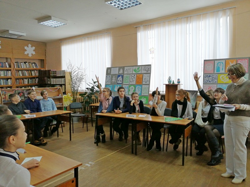«Новогодний калейдоскоп» — под таким названием прошел в библиотеке-экоцентр праздничный развлекательно-познавательный турнир, в котором приняли участие семиклассники школы № 5. Три команды «Умки», «Снегопад» и «Куранты» с задором и азартом старались выполнить все задания конкурсной программы, заработать шарики-жетоны за правильные ответы, чтобы украсить ими командную елку. Ребята вспоминали о традициях встречи Нового года в разных странах мира, о том, чем украшают ёлки, какие подарки со значением дарят на праздник, что ставят на новогодний стол. Школьникам пригодились знания о хвойных породах деревьев, чтобы разгадать «зелёные» загадки, не обошли вниманием и символ наступающего года – свинью, о которой в народе сложились разные пословицы и поговорки, их и предстояло вспомнить командам, чтобы справиться с заданием «Что мы знаем о хозяйке». А какой же праздник без песен, танцев и новогодних кинофильмов?! Артистические и музыкальные способности проявили участники турнира, выполняя необычные задания «Споёмте, друзья!», «Где это слыхано?», «Танцуют все!».