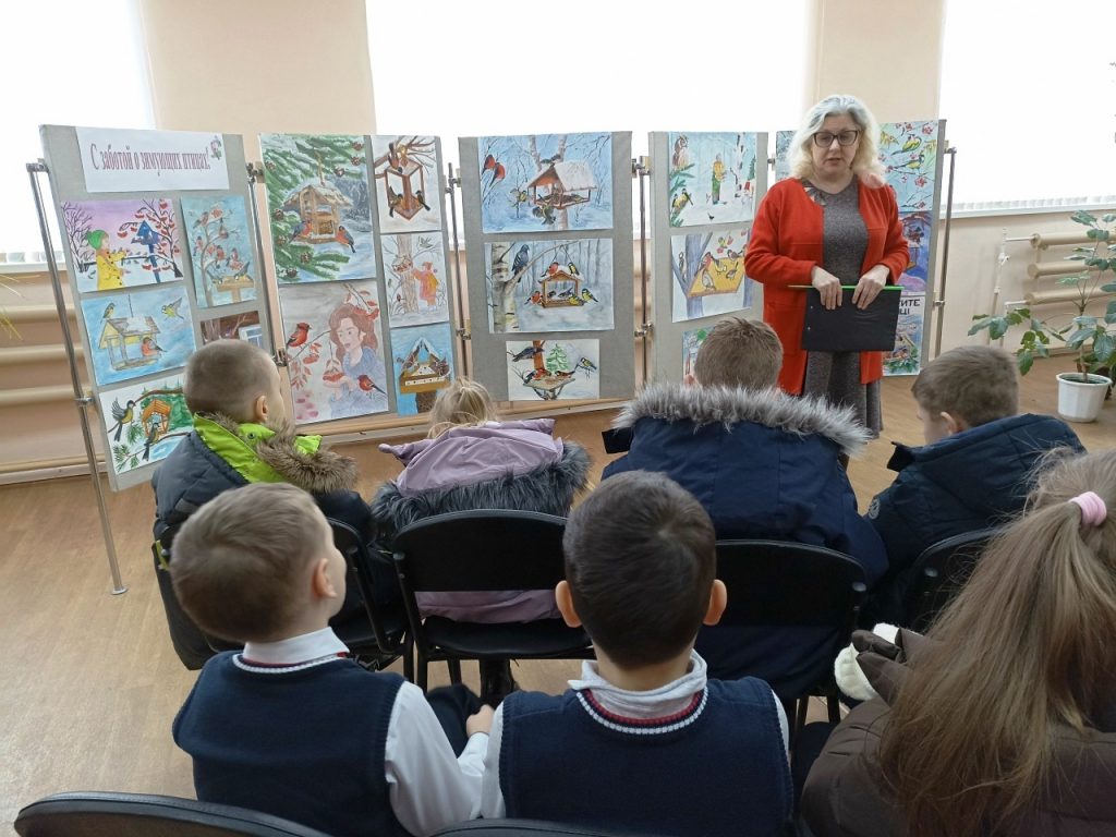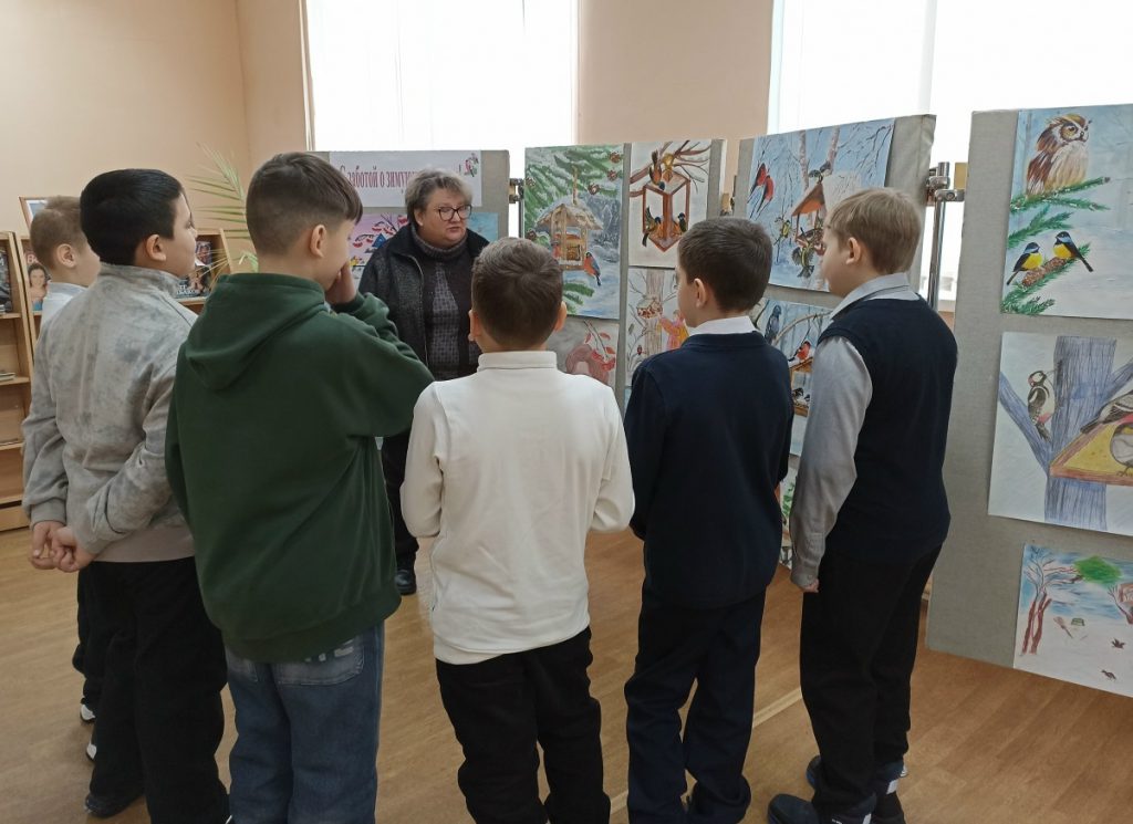На выставке «С заботой о зимующих птицах!» представлены 64 работы учеников школ города и воспитанников детского сада № 27. Яркие плакаты, рисунки, стенгазеты, фотонаблюдения, рекомендации, сочинения, стихотворения – всё призывает к бережному отношению к пернатым в зимнее время. На экскурсиях ребята слушают стихи поэта А. Яшина «Покормите птиц зимой», узнают о писателе Е. Носове, который в память о своём друге развешивал кормушки для птиц и листовки со стихами в родном Курске, об истории появления Всероссийской акции «Покормите птиц!». Библиотекари также делятся информацией о правильных кормах для зимующих птиц.