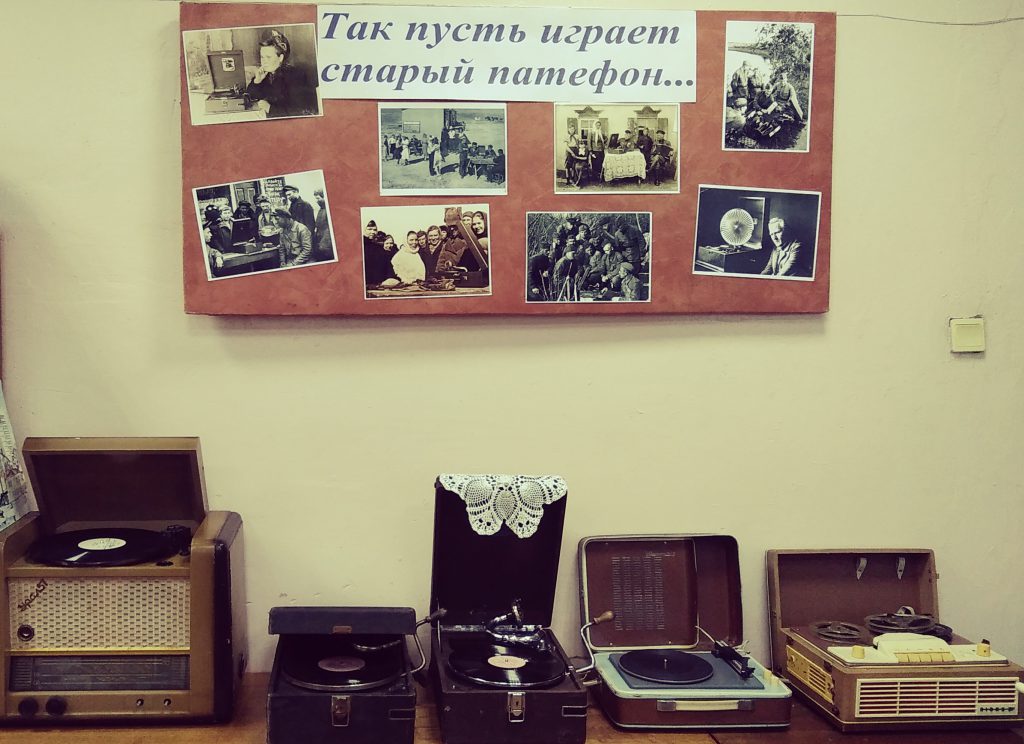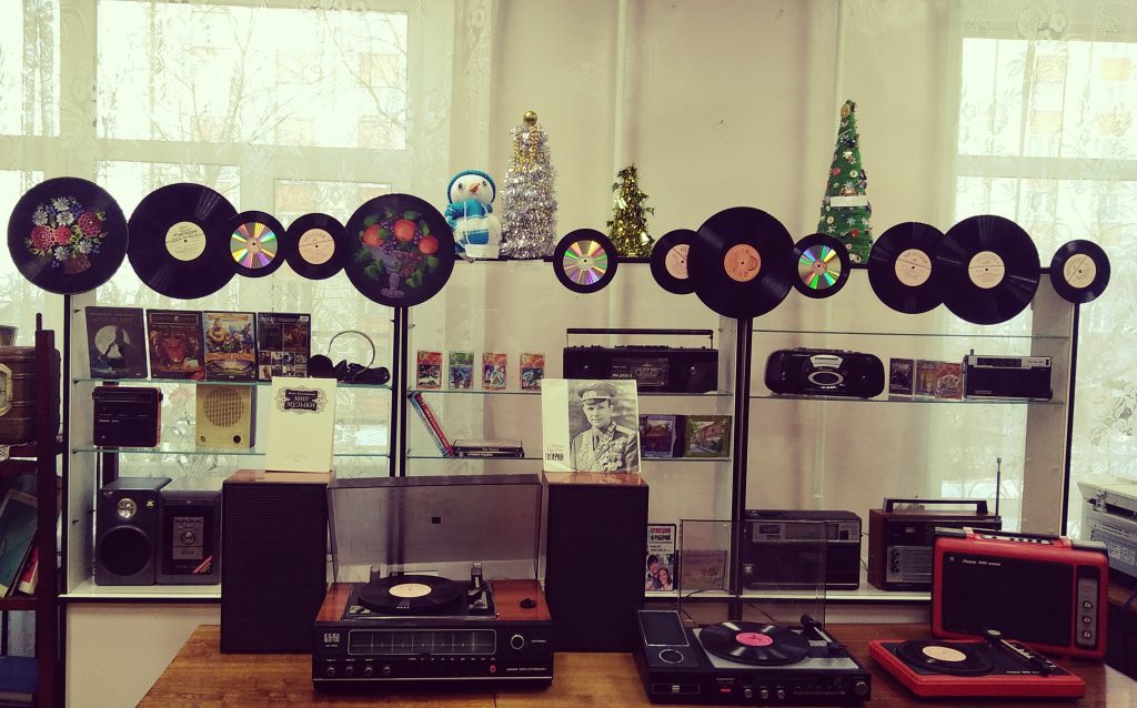 В библиотеке № 5 организована выставка, на которой представлены патефоны, проигрыватели, магнитофоны, радиолы прошлого века.