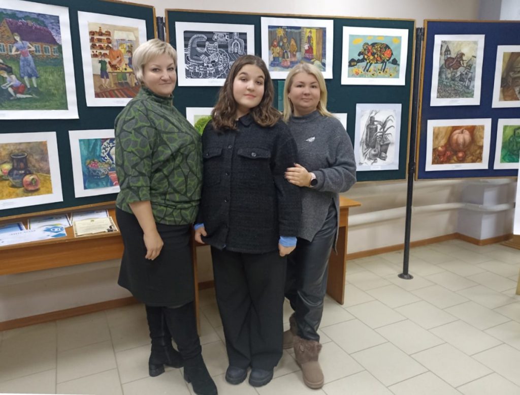 Обе юные художницы – ученицы преподавателя Людмилы Николаевны Кузьминой. Девушки серьезно учатся, открывают для себя новые, неведомые миры в живописи – в пространстве, в композиции, в цвете, в пластике.
