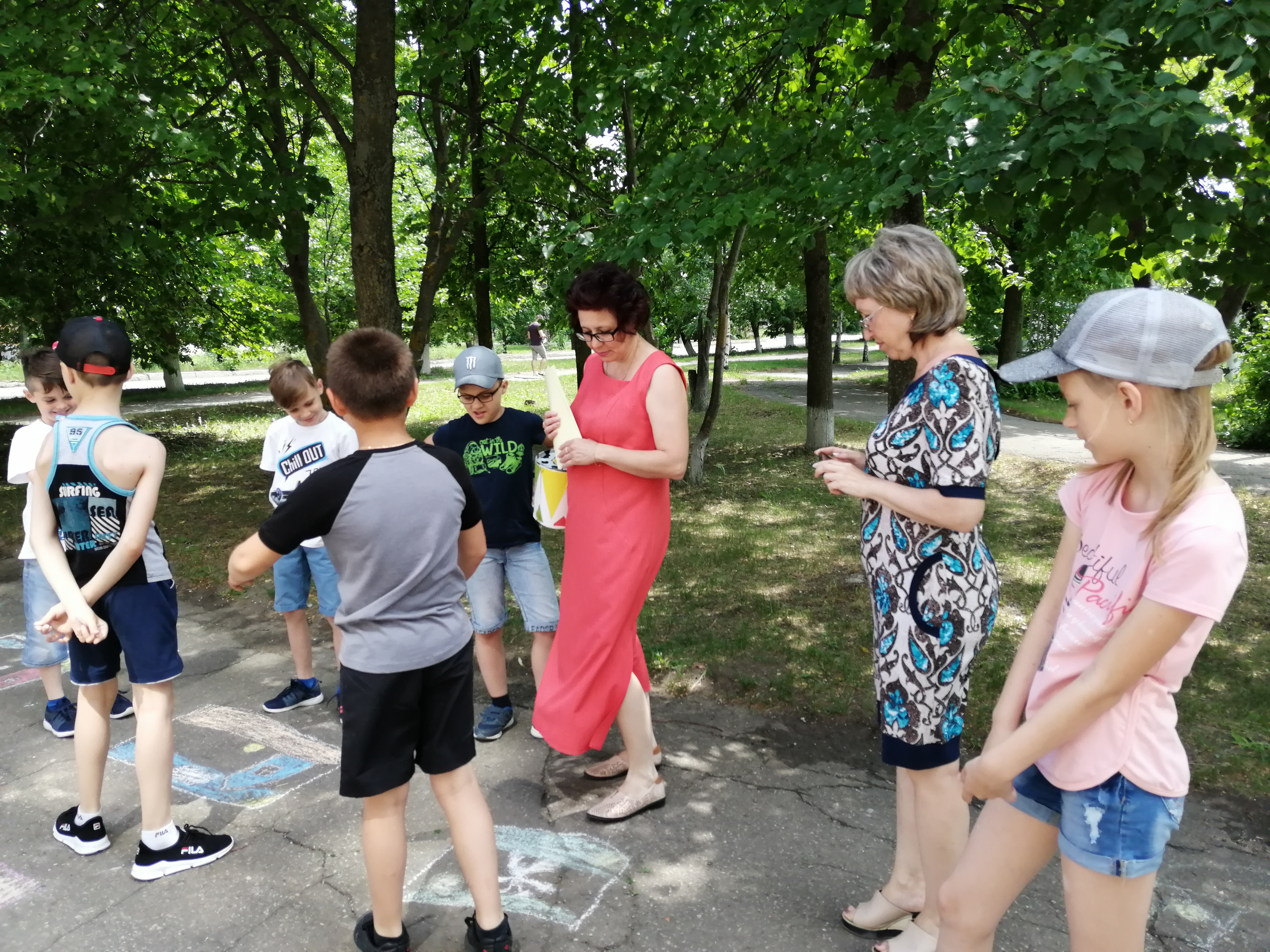 Под руководством ведущей ребята погрузились в мир театра. Узнали об истории его возникновения, а затем выполнили тематические задания: обучились актёрскому мастерству и сценической речи, угадали профессии, которые относятся к театральной деятельности, вспомнили театральные постановки и даже показали театр-экспромт, почувствовав себя настоящими артистами. Затем, взяв цветные мелки, отразили свои эмоции и чувства в рисунках на асфальте, изобразив понравившихся театральных героев. Рисунки получились сказочными, яркими, оригинальными, а главное – добрыми.