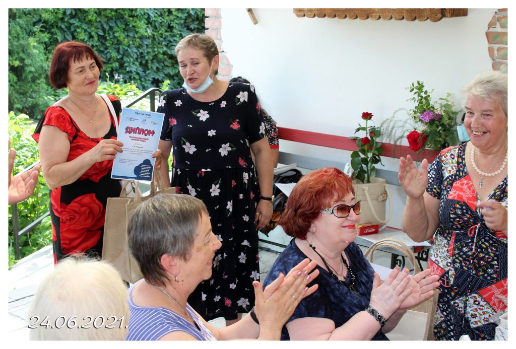 На июньской встрече так же были вручены дипломы и подарки от Пензенского областного отделения международного общественного фонда «Российский фонд мира» за участие в проекте «Дети войны: активное долголетие». Награждены были Лидия Сергеевна Куцеба, как организатор и бессменный руководитель клуба «Гармония» на протяжении 15 лет, и Галина Викторовна Аладова за высокий профессионализм в подготовке и проведении праздничных  мероприятий в клубе.