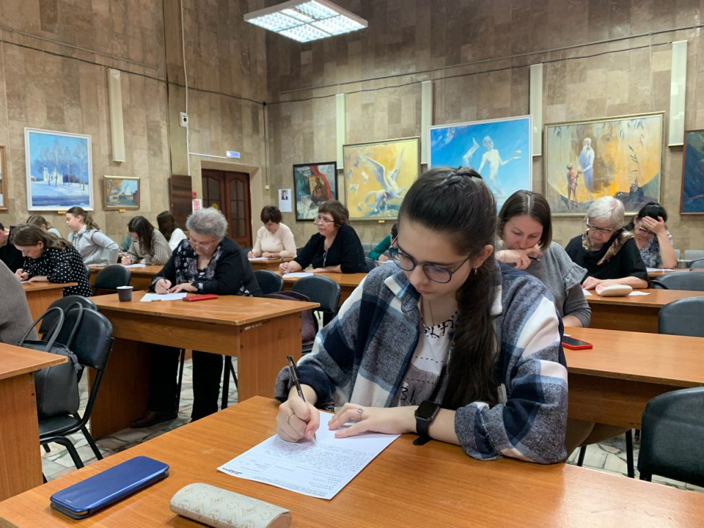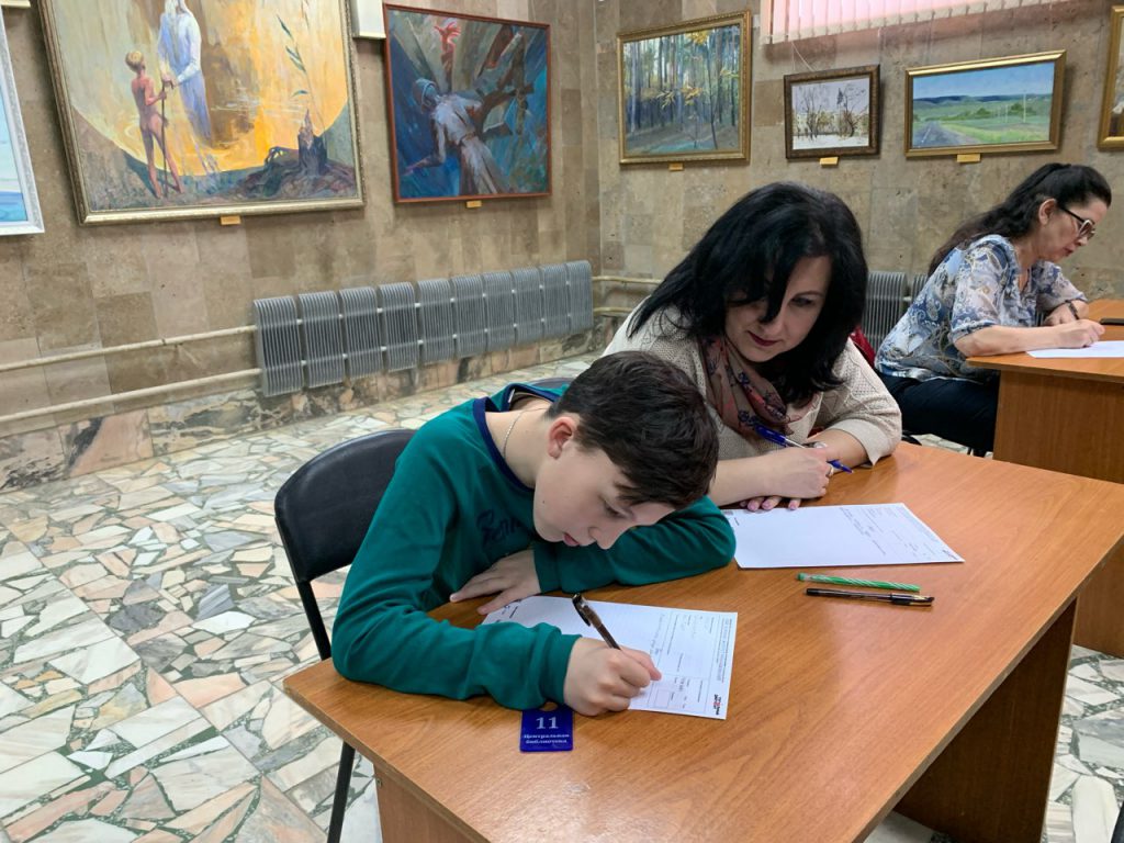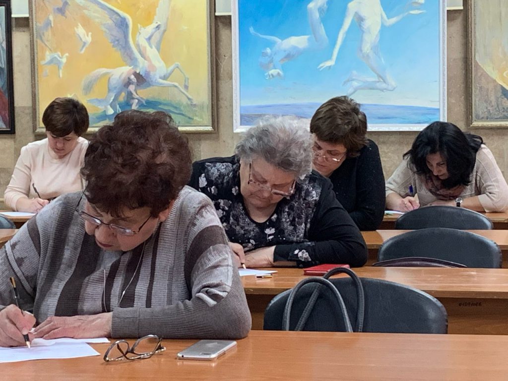 В этот день в библиотеке царила дружеская атмосфера, сюда пришли как постоянные участники акции, так и новички. Проверить свою грамотность решили 22 человека. Диктант писали школьники, пенсионеры, служащие, частные предприниматели… Организаторы диктанта в библиотеке самым юным участникам подарили блокноты .