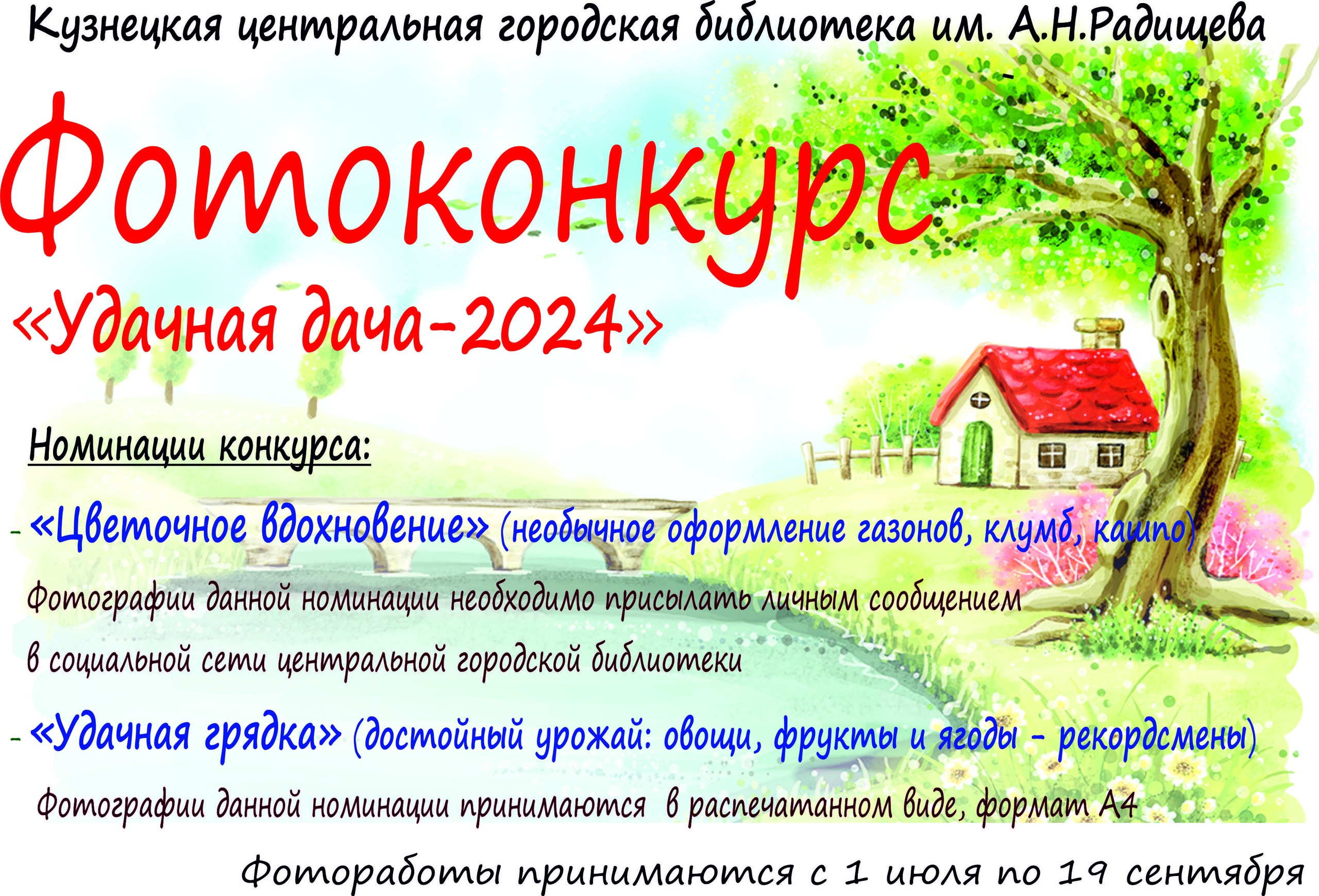 Кузнецкая центральная городская библиотека им. А.Н. Радищева объявляет фотоконкурс «Удачная дача-2024».