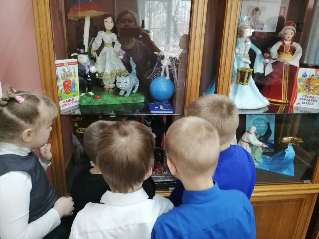 В марте в библиотеке открылась выставка работ кузнецкой мастерицы Людмилы Михайловны Дугиной «Куклы – литературные персонажи». Каждая игрушечная композиция находится в окружении книг, стихов или сказок, героями которых они являются. На выставке в витринах поселились Царевна Лебедь, Руслан, кот ученый из сказок А.С. Пушкина, Маленький принц, герои «Золотого ключика» А.Н. Толстого и другие куклы. Удивительным образом переданы характеры каждого персонажа, их позы, жесты.