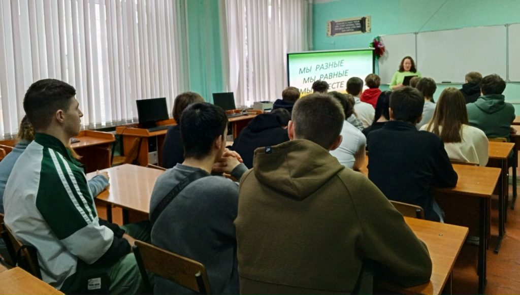 Урок толерантности «Мы разные. Мы равные. Мы вместе»,  посвященный Международному дню толерантности, провели сотрудники юношеской библиотеки для студентов колледжа электронных технологий.