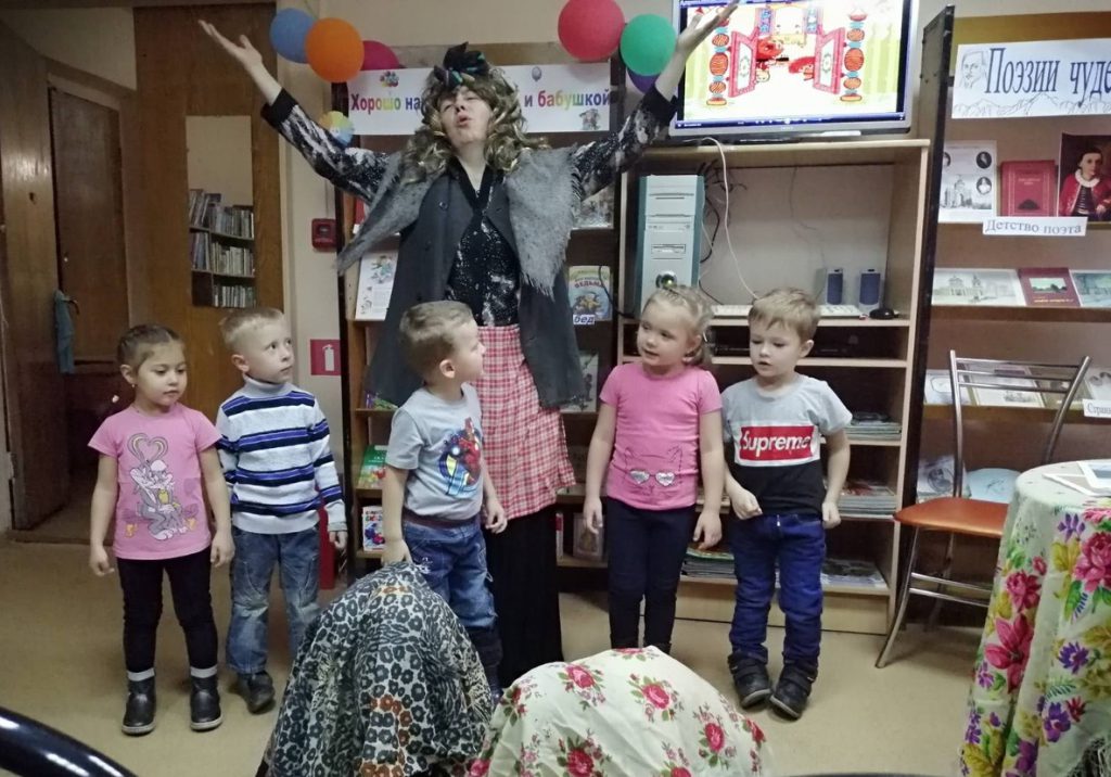 В преддверии Международного дня бабушек и дедушек в гости к Бабушке-Ягушке в детскую библиотеку пришли дошколята вместе с мамами и папами.