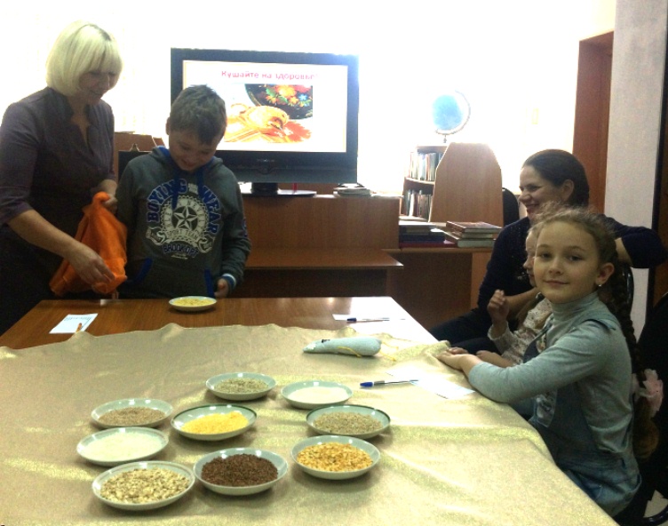 14 октября участники семейного клуба «ЛИСС» собрались в юношеской библиотеке на познавательный час «Каша – пища наша».