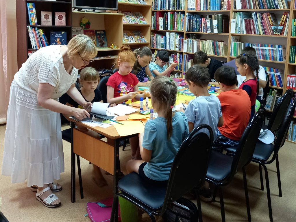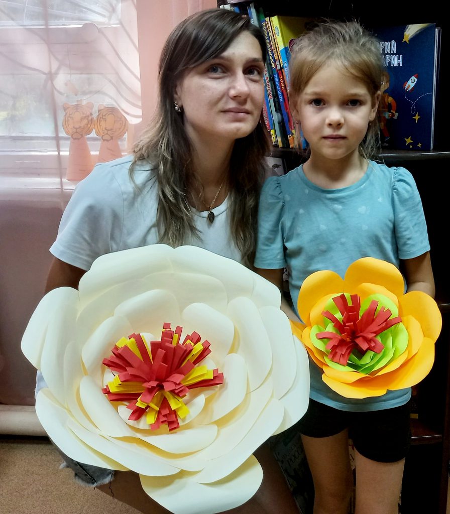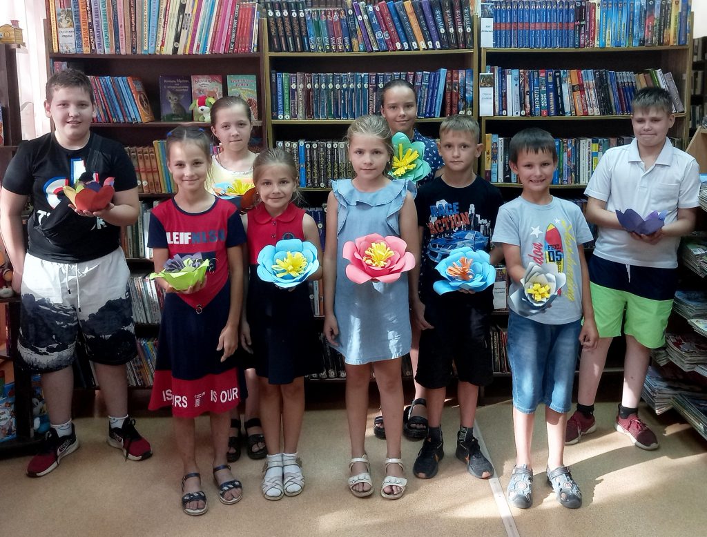 В ходе занятия девчонки и мальчишки узнали о разнообразных техниках, применяемых при изготовлении объёмных цветов, о приёмах и способах работы с материалом и инструментами. Сотрудники библиотеки рассказали о том, что из бумаги можно изготовить практически все виды цветов, и познакомили детвору с увлекательными книгами по цветочному рукоделию.