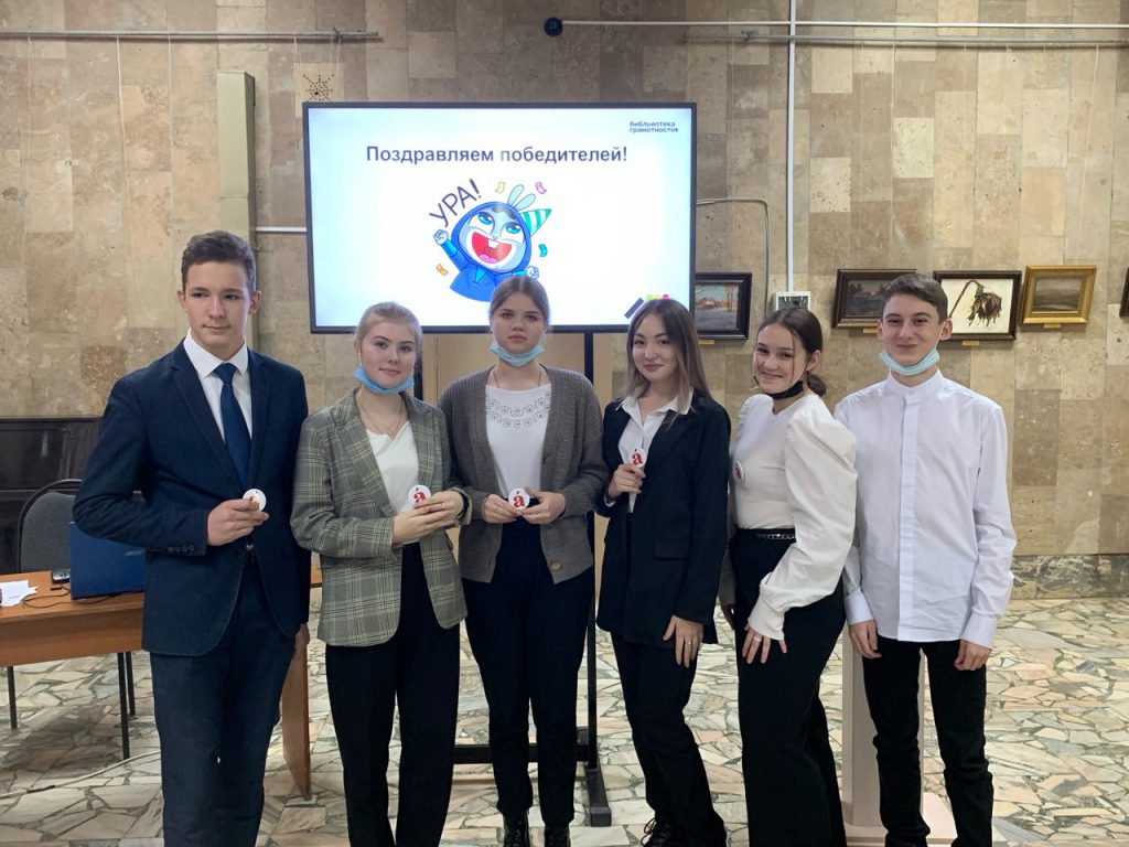 После официальной части встречи куратор проекта «Библиотека грамотности» Ольга Суслова провела для школьников квиз «30 вопросов о русском языке».