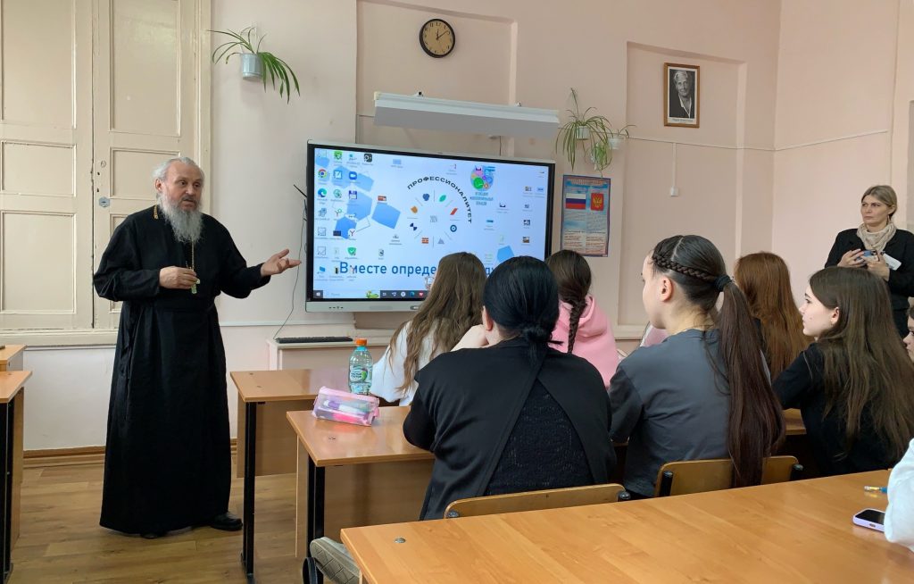 Во второй части выступил руководитель социального отдела Кузнецкой епархии, настоятель храма Димитрия Солунского с. Поселки протоиерей Михаил Сарансков. Он рассказал студенткам о празднике Благовещения Пресвятой Богородицы — дне, когда Деве Марии была принесена весть о рождении Спасителя. Священник объяснил, что этот праздник напрямую связан с темой встречи: с ответственностью и той радостью, которую приносит в мир появление ребёнка.