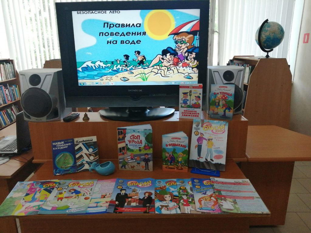 В библиотеке оформлена выставка информационных материалов об опасности на водоемах. Дети познакомились с правилами поведения у воды, узнали, чего категорически нельзя делать на природе. Ребята участвовали в играх «Вода — не вода», «Что я возьму на пляж?», «Тонет-плавает», «Море волнуется», «Мозаика».