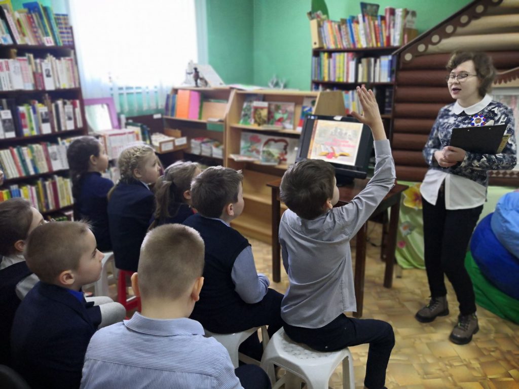 Сотрудники библиотеки-экоцентра для учеников школы № 5 провели громкие чтения рассказов Л. Кассиля, С. Алексеева и А. Митяева.