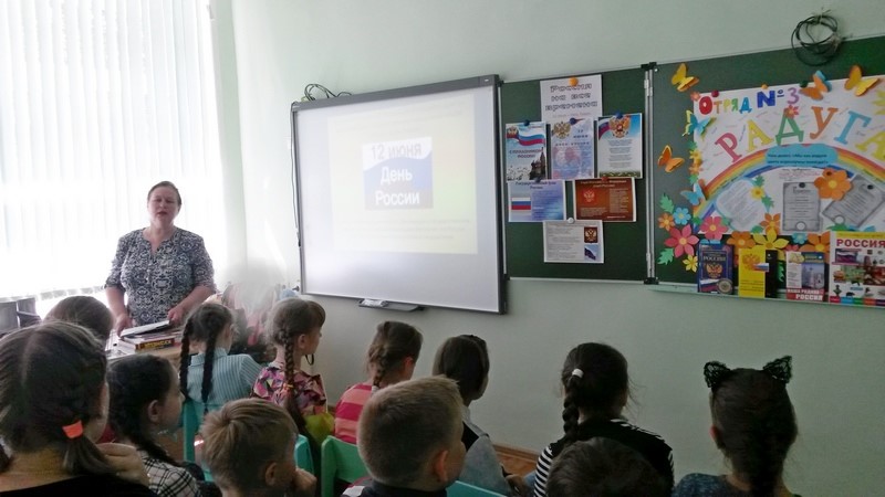 Сотрудниками филиала № 9 в рамках цикла «Патриоты России» для участников летнего лагеря школы № 5  организован час размышления «Что мы Родиной зовём?».