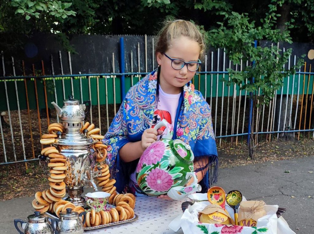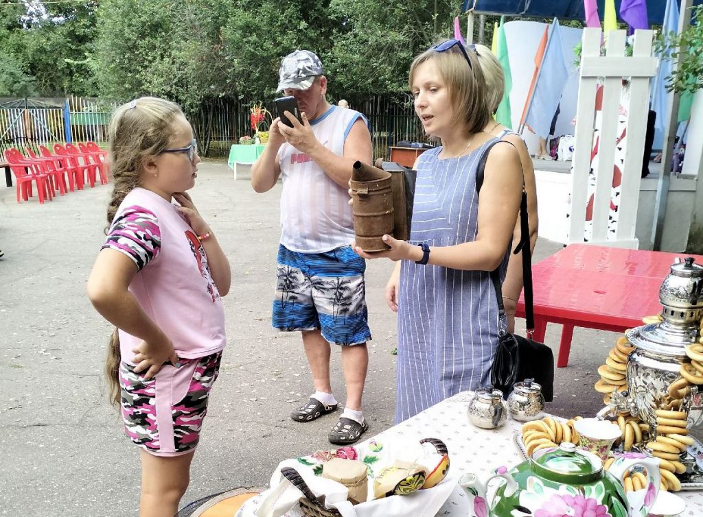 Кроме этого, библиотекари для гостей праздника подготовили специальную фотозону «Медовый Спас». Посетители разных возрастов с удовольствием делали яркие снимки у самовара, разливали чай из огромного чайника, изучали инвентарь пасечника.