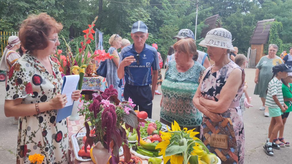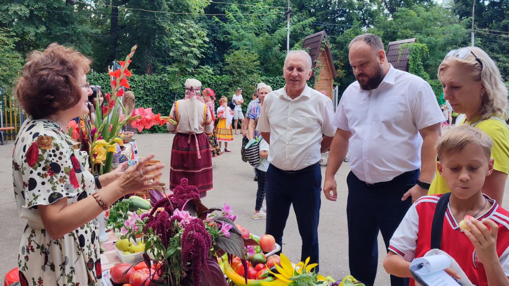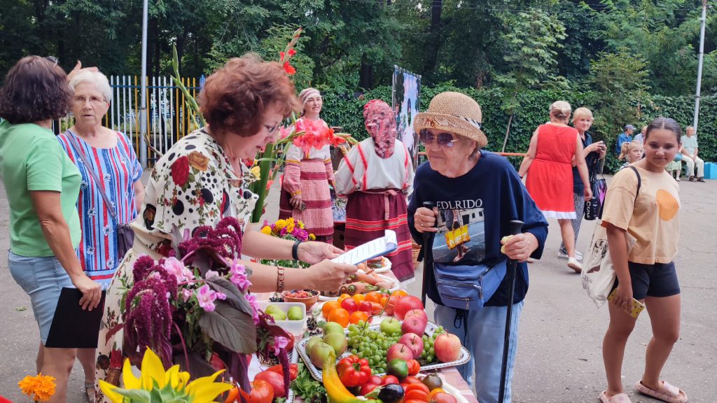 В культурно-досуговом комплексе «Нескучный сад» клубисты представили свой урожай: полосатые кабачки и зелёные хрустящие огурцы, разноцветные томаты, красно-жёлто-зелёные перцы, бело-фиолетовые баклажаны, ароматные наливные яблоки, а также вызывающие небывалый интерес и восторг публики гроздья винограда и сочные груши. А ещё – не по сезону созревшие сочные ягоды ремонтантных сортов садовой земляники и малины. И, конечно же, было много душистых цветов.