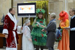 Домашнее задание «Наша елка всем на диво!» выявила среди семей мастеров шитья, составления праздничных композиций из подручного материала. Семья Ипполитовых предстала в образе елки (мама), дедушки Мороза (папа) и Снегурочки (дочка), персонажи мини-спектакля прочитали стихотворное послание по сохранению хвойных деревьев в новогодние праздники. С неменьшей выдумкой и юмором к заданию подошла и семья Загариных, сшив елочки из подушек и кружевной ткани, из старых рекламных изданий елку приготовили Громовы, семья Кожан собрала красивую мандариновую елку и испекла медовую, необычную бумажную ёлку приготовила семья Паль, самой экологичной была признана ёлка семьи Медных (из зеленого пластика). Не обошлось на празднике без хоровода вокруг ёлки (тоже, кстати, альтернативной – искусственной). Дедушка Мороз, Снегурочка и персонажи экоспектакля Лиса, Заяц и Бобр на радость детворе участвовали в фотосессии вместе со всеми желающими.