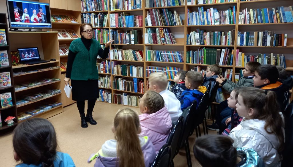 В рамках Года культурного наследия народов России сотрудники детской библиотеки провели фольклорный час «Эх, ложки-матрёшки!».